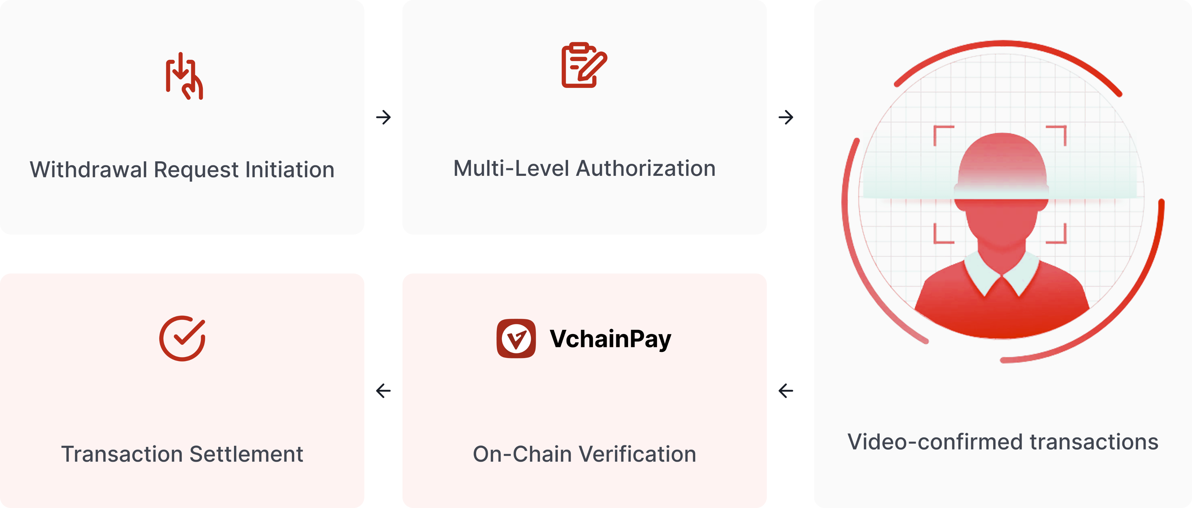 VchainPay’s custody system ensures every withdrawal passes through multi-level approval, AML/KYT screening, and on-chain verification, providing total control and regulatory confidence for institutional clients.