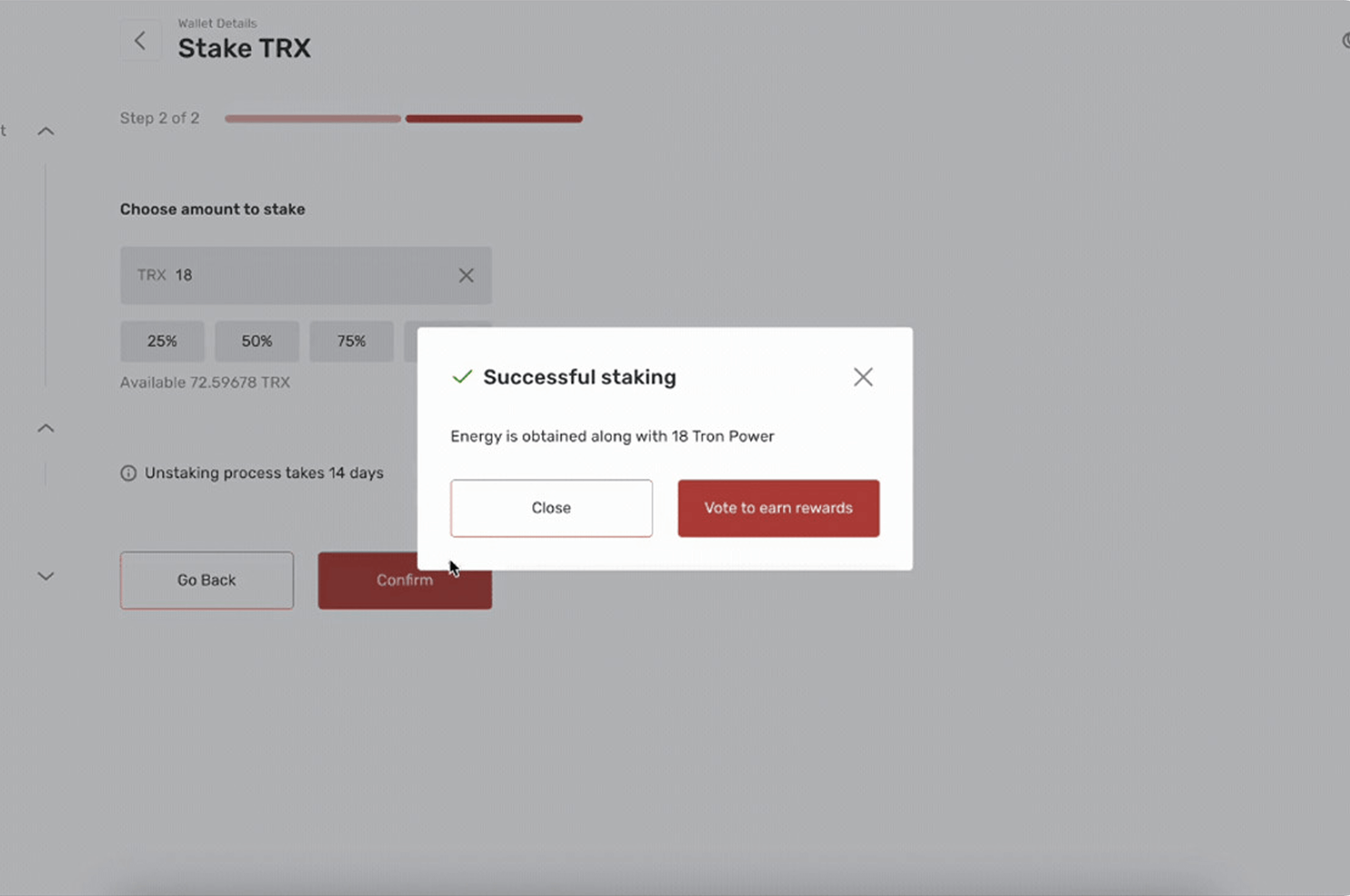 TRON (TRX) staking on VchainPay allows users to participate in the TRON network by staking their TRX tokens. In return, users can earn staking rewards while supporting network operations.