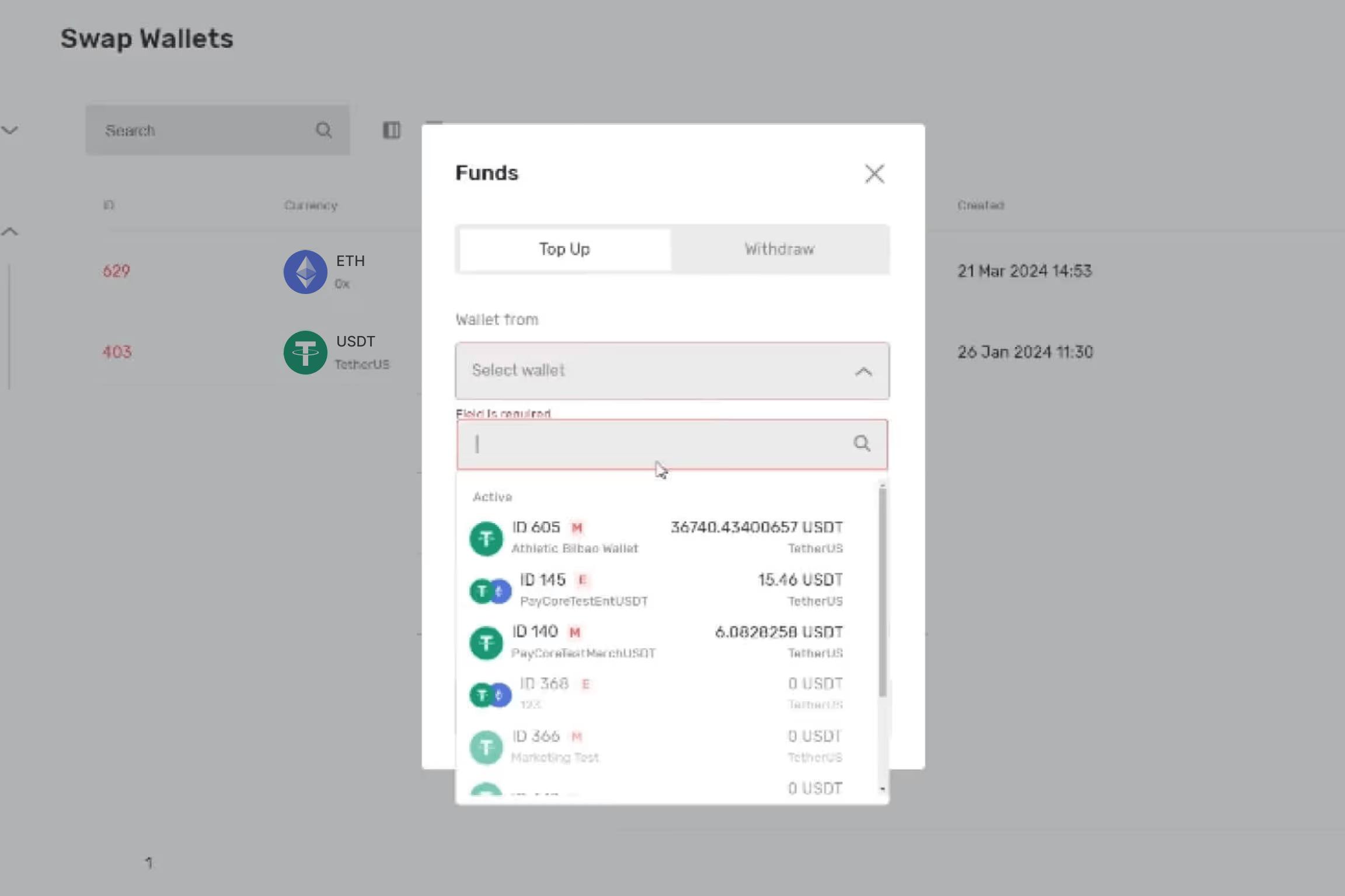 Top up your VchainPay wallet with the tokens you want to swap